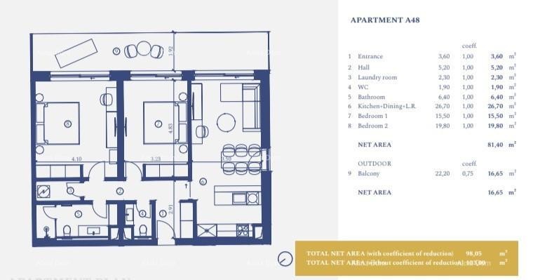 Appartement A-48 (103,6 m2) bevindt zich op de 3e verdieping: