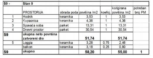 Appartement S9, gelegen op de 1e verdieping van het gebouw, oppervlakte 55 m2.