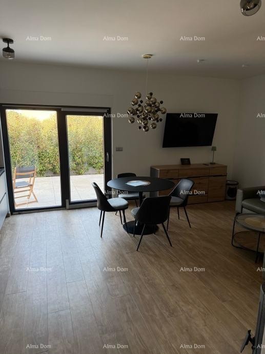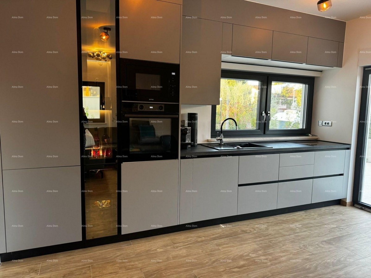 Te koop is een volledig gemeubileerd en direct bewoonbaar driekamerappartement op de begane grond van een moderne nieuwbouw, gelegen in een rustige buurt van Pula, in een klein appartementencomplex met in totaal twee verdiepingen.