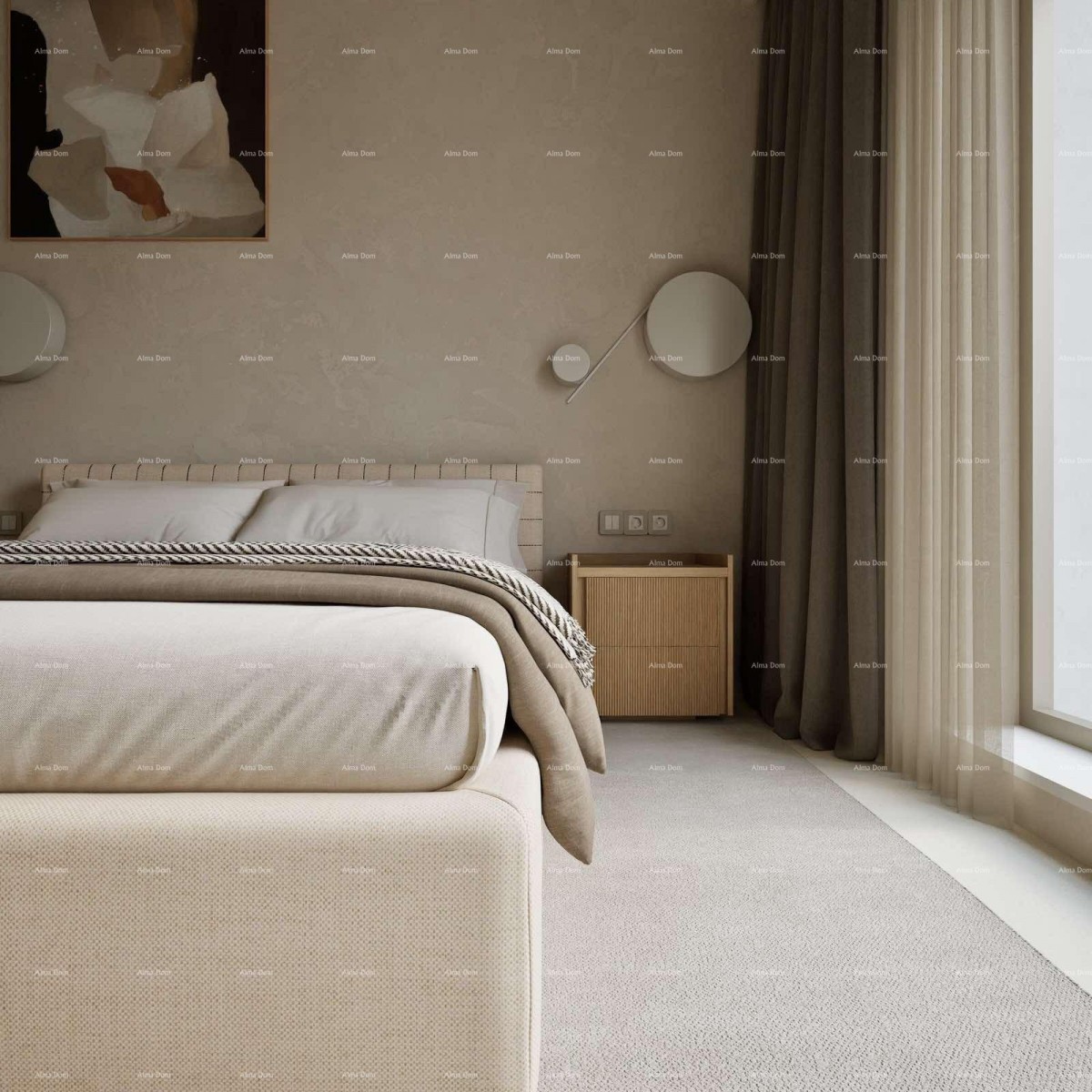 Op de eerste verdieping zijn een gang, 4 slaapkamers, elk met een eigen badkamer en toegang tot het terras. De netto binnenoppervlakte van huis C is 176 m².