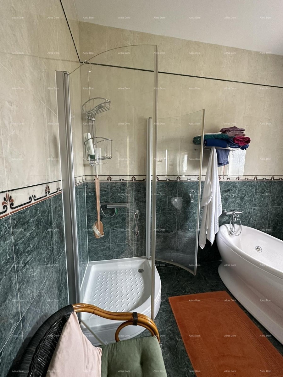 In Medulin staat een prachtige woning met zwembad te koop op een zeer sfeervolle en rustige locatie aan een ruime groene tuin. De woning beschikt over 2 slaapkamers, echter zijn er op de eerste verdieping van de woning twee grote kamers die eenvoudig om te bouwen zijn tot slaapkamers. De woning beschikt over 3 badkamers, elke slaapkamer heeft een directe toegang tot de badkamer. Verwarming en koeling wordt verzorgd door airconditioning, alhoewel er op de eerste verdieping van het huis een kachel staat en het mogelijk is om met hout te verwarmen. Bij de woning zijn 4 verharde parkeerplaatsen aanwezig.