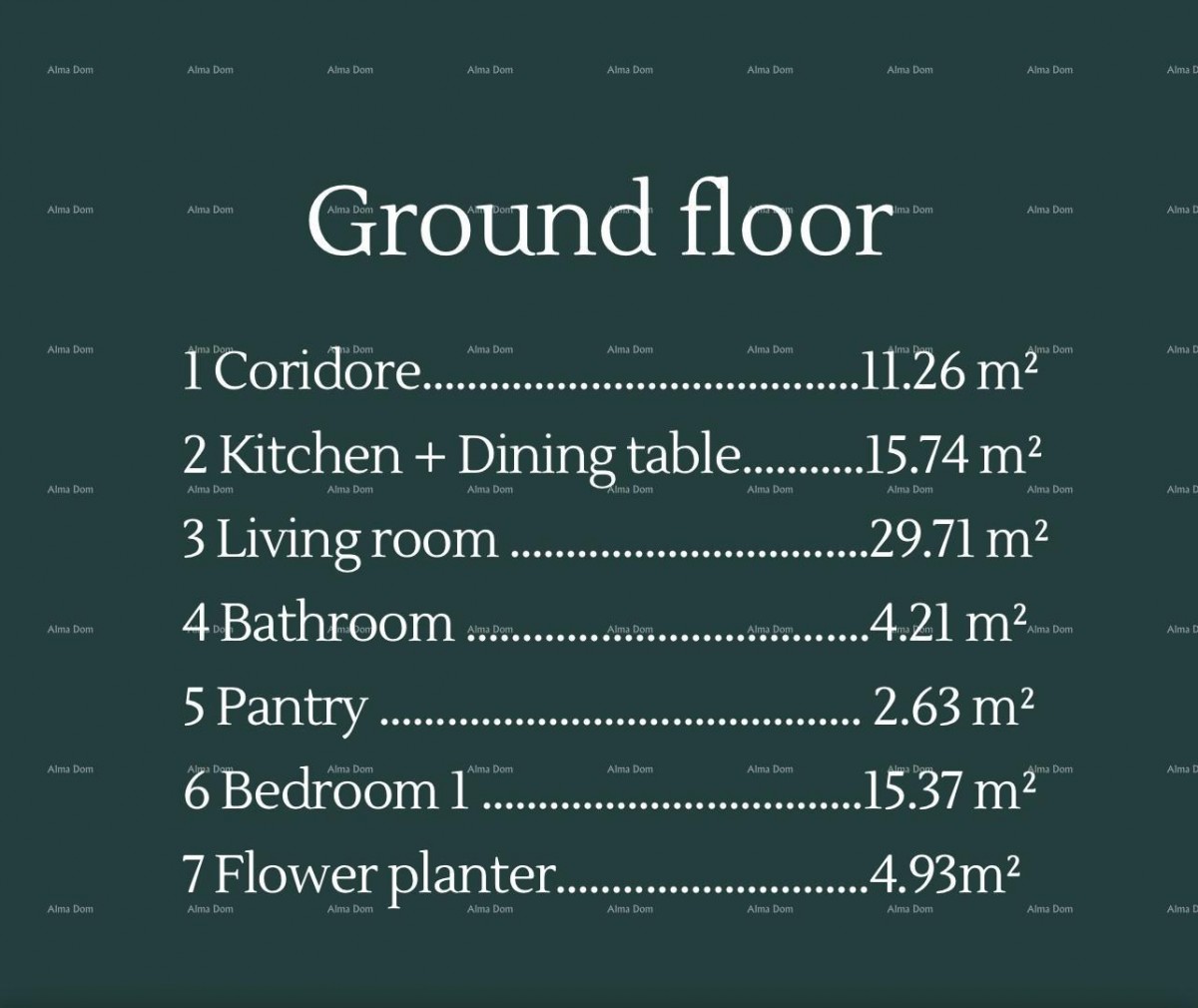 Villa B25, met een totale oppervlakte van 211,95 m2, bestaat uit een begane grond en een eerste verdieping. Op de begane grond is er een hal, woonkamer, keuken met eetkamer, badkamer, slaapkamer, bijkeuken en een groene ruimte voor bloemen.